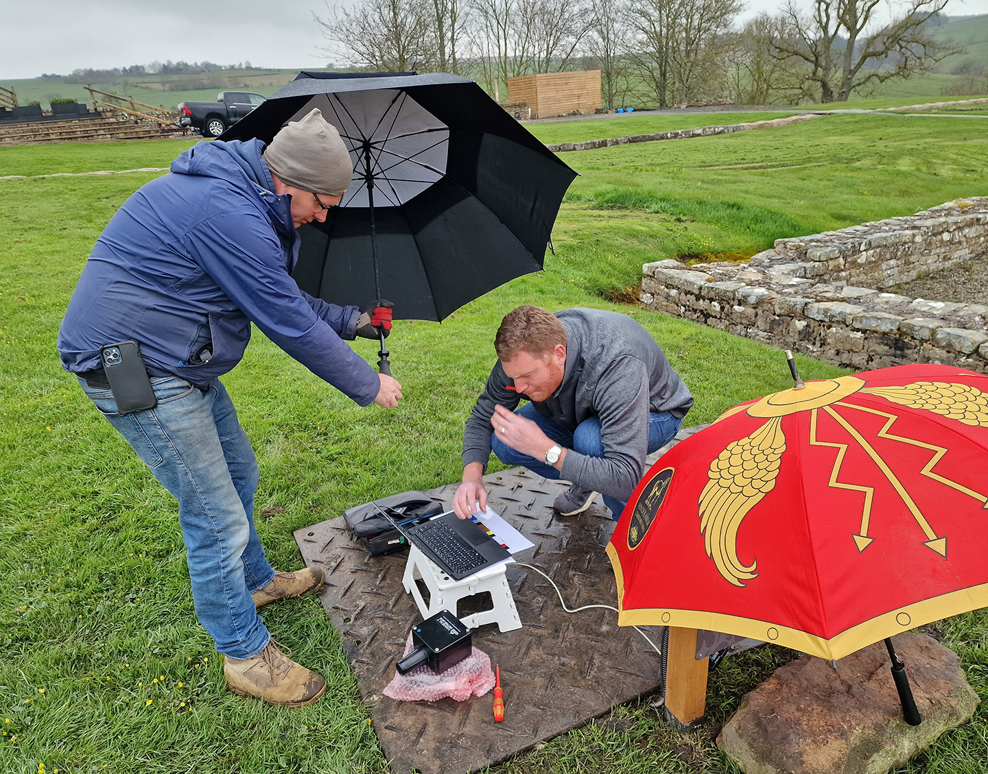 It wasn’t a “rapid unscheduled disassembly”* but the consequences did allow us the pleasure of an unscheduled revisit to Vindolanda this Saturday. It’s always a pleasure to see the place but perhaps less so on a rainy day to fix a problem that we might have avoided.