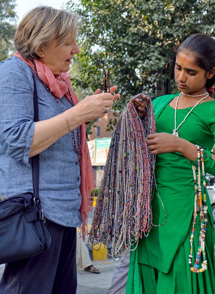 She makes bead necklaces and sells them for 10 Indian Rupees (about 11 pence) each and even at that rate she is expecting to have to negotiate.