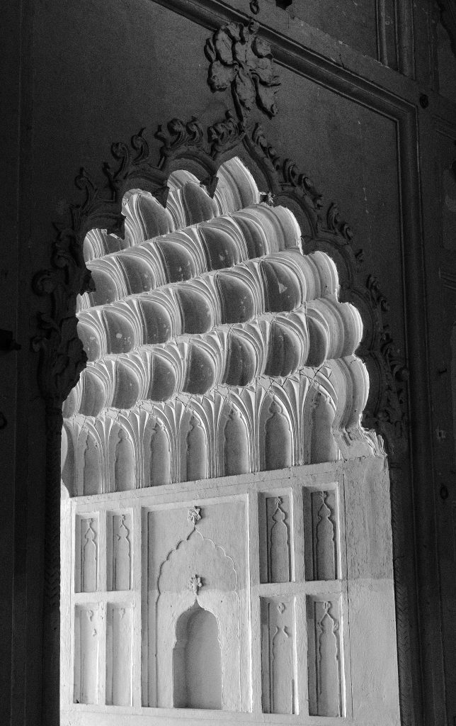 The fourth Nawab (ruler, “like a king”), Asaf Ud Dowhala found interest in employing a Persian architect to design his mausoleum and the resulting creation, Bara Imambara, is a wonderful mixture of Persian and Moghul influences; to my mind finer in quality and intricacy with very delicate details.