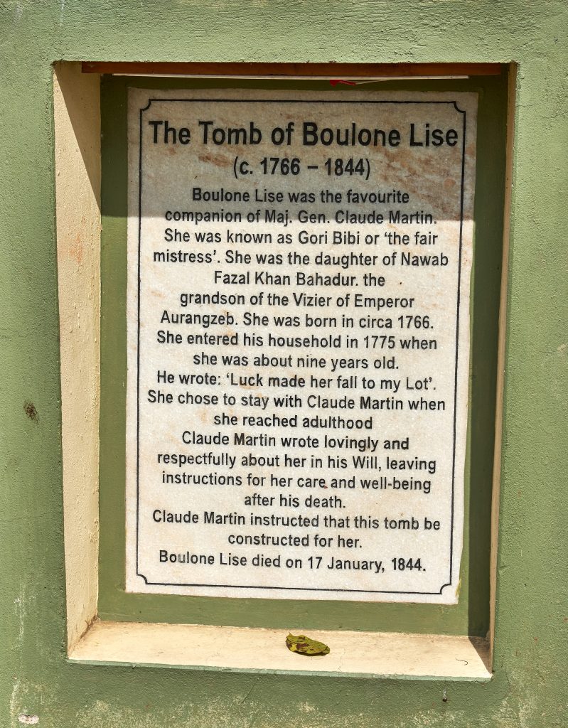 Boulone Lise, whom he purchased when she was nine years old remained with him during his lifetime. She was to survive him by some 45 years and he left her a generous legacy. He designed and had built what became La Martiniere School, still in existence today as a prestigious school for 5000 mainly Indian elites. Boulone Lise was buried at Martin’s request on a plot on the school grounds.