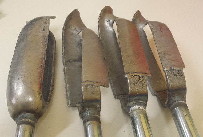 Con ellas podemos muestrear en casi cualquier tipo de suelos, desde las arcillas más compactas hasta las arenas más gruesas; únicamente debemos seleccionar el ancho de la hoja, más fina para arcillas, más ancha, casi completamente cerrada, para arenas. Como un padre orgulloso que fotografía a sus pequeños viviendo todo tipo de aventuras, no pude reprimirme y fotografié los cuatro tipos de barrena Edelman, la familia al completo.