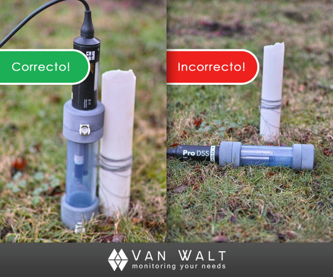 La solución no es un tema de alta tecnología. Simplemente se puede apoyar la celda de flujo en algún objeto, o tenerla dentro de un hueco de la maleta Pelicase (si no llueve); también podemos proveer una piqueta que ha diseñado Xylem, aunque esta solución no es práctica si el suelo es duro.