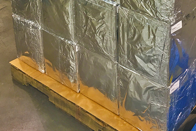 Estos filtros se someten a pruebas muy estrictas de trazabilidad por lotes y tenemos que protegerlos lo mejor posible, pero esto puede ser difícil. Nuestro proveedor está en los Estados Unidos y nos tenemos que asegurar que mantenemos las posibles rutas de contaminación lo más cortas posible. Así, por ejemplo, usamos el transporte aéreo. Es más caro, pero el viaje es más corto. Y luego está el embalaje. Los filtros vienen en cajas de 50 unidades y para dar una protección adicional estos están envasados individualmente. Además envolvemos cada caja con papel de aluminio estándar para crear una barrera impenetrable.